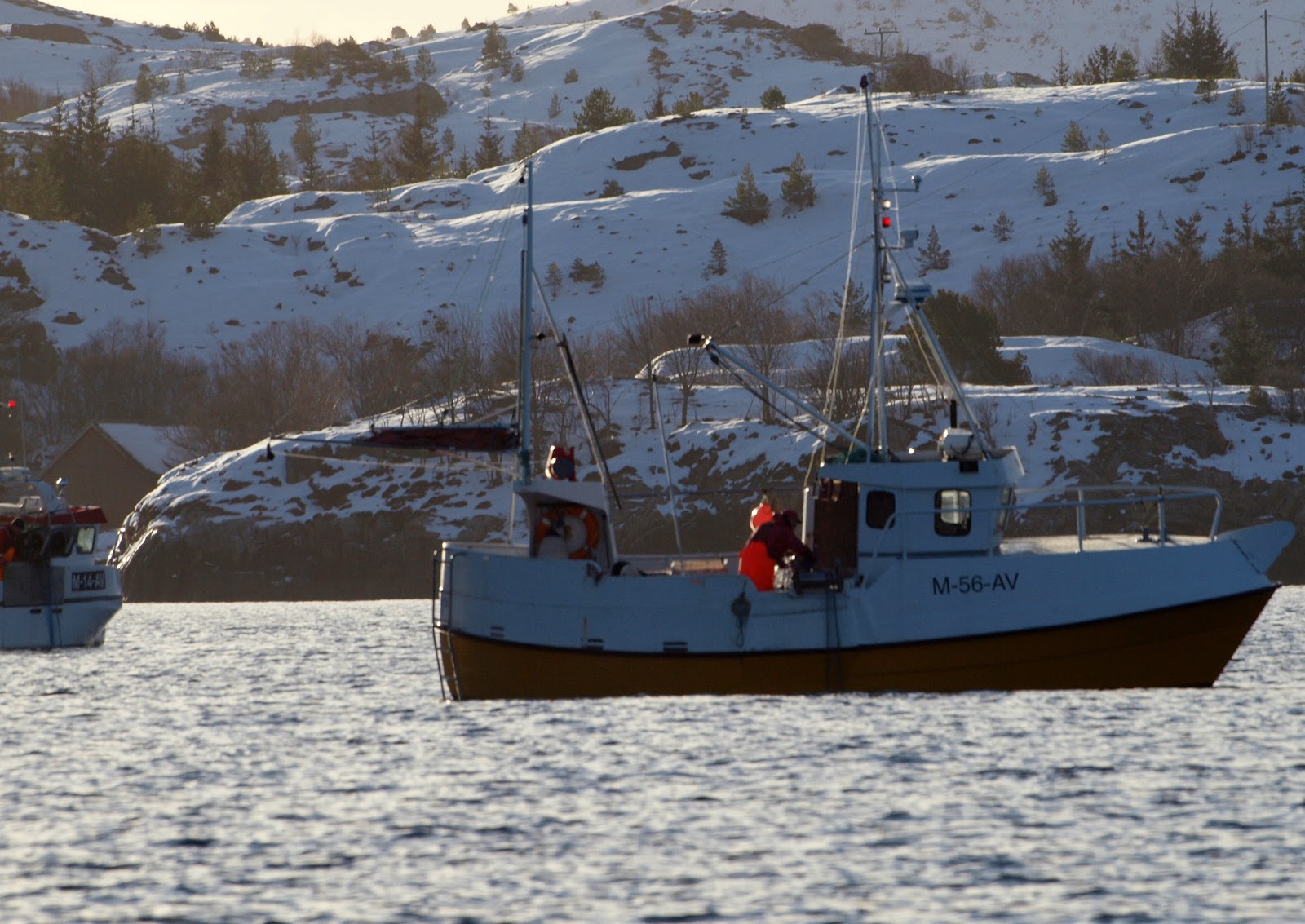 Inne på vika har båtene begynt å samle seg, og det er noen fisker å få nå for tiden her inne. Inne ved Gjengstøhammeren er det for tiden tett i tett med garn og blåser så man kan gå tørrskodd på sjøen.